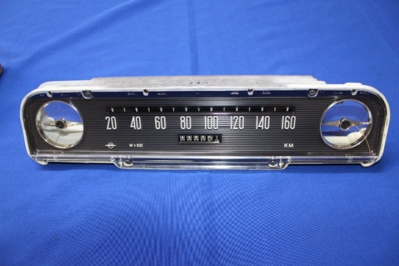 Tachometer 160km/h , W=632, Rekord A + B Caravan, fuer Dreiganggetriebe mit Hinterachsuebersetzung 38:9